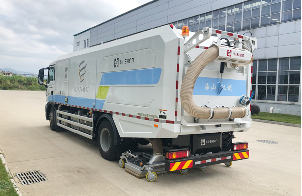 車輛采用現代泓圖 14T 底盤,利用首創高壓水空射流技術、超凈真空回收技術等改裝而成。該車功能多樣,操作簡單、可靠性高。其中液壓泵、液壓馬達、高壓水泵、氣動元件和電氣元件等關鍵配套件均采用國內外知名品牌。車輛帶有簡易臂架,可快速抽吸路邊狀塊垃圾、樹葉,疏通堵塞的下水管道。車輛標配道路污染深度清除、路緣和路緣石立面污染清除、道路快速保潔、塊狀垃圾收集四種功能,可選配手持清洗盤等其它功能。