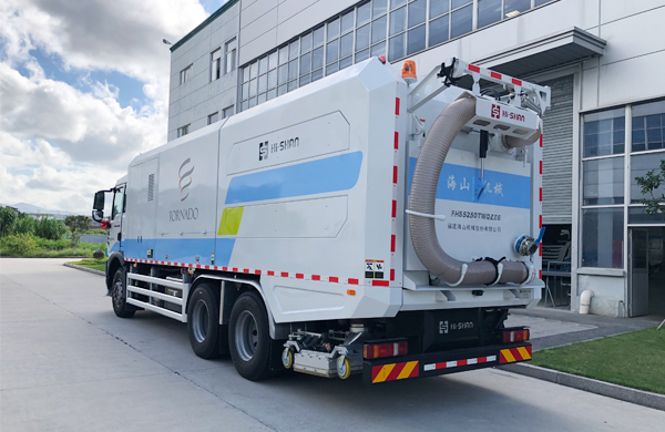 “海山颶風牌”FHS5250TWQZE6 25噸道路污染清除車,能徹底解決現有裝備無法有效對道路積垢、板結、油污等污染物進行清除和回收的難題,從源頭上遏制道路揚塵,實現“席地而坐,路見本色”。