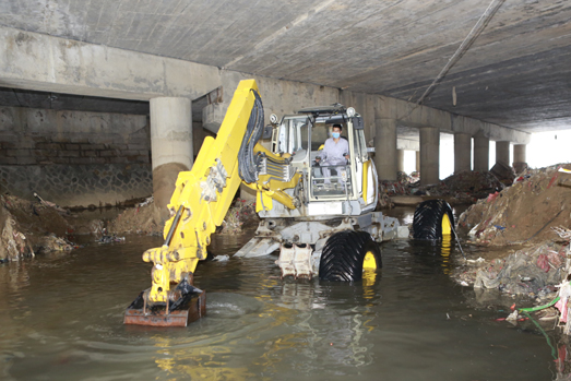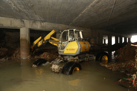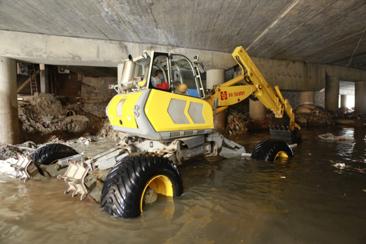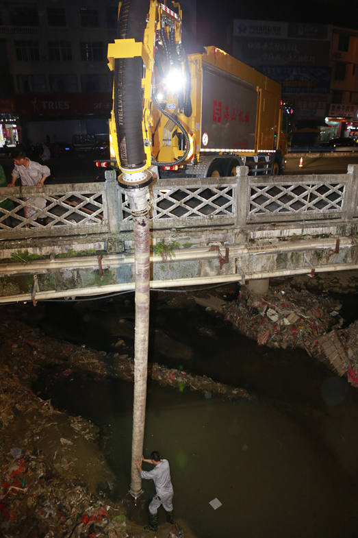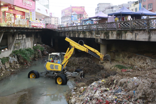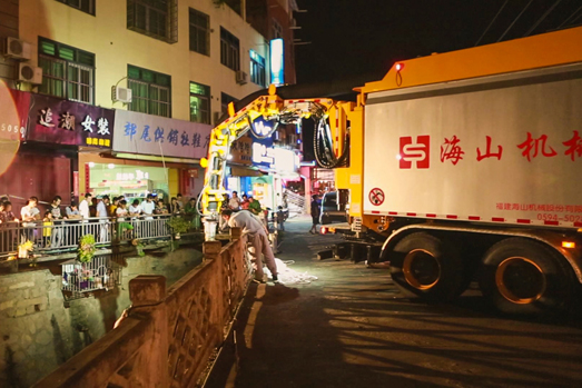 Before the The 14th typhoon Meranti hit Fujian province, Hishan Machinery rushed its high-end emergency rescue equipment to Jiaowei Town in Xianyou County to help desludge a river that has been severely choked. The desludging process was carried out by the suction excavator and the walking excavator, combining the long-distance operation and powerful suction ability of suction excavator with the maneuverability and all-terrain climbing ability of walking excavator, a combination that solves the problem where ordinary machinery cannot operate in the narrow river. The blockage was finally cleared out after hours of digging and cleaning, making the river channel clears for the incoming flood.